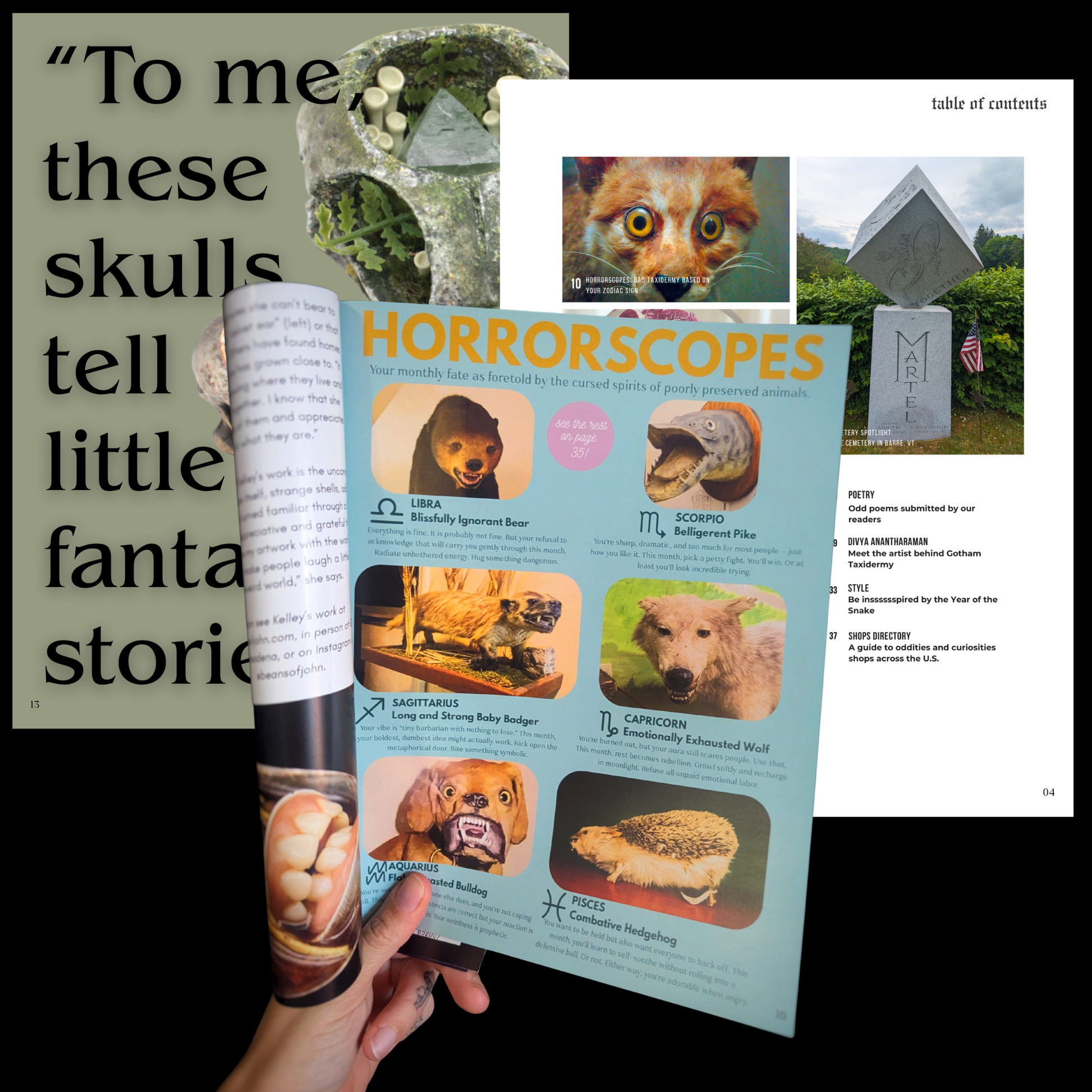 🔹 Horrorscopes: The zodiac as you’ve never seen it before—predictions illustrated with gloriously bad taxidermy.